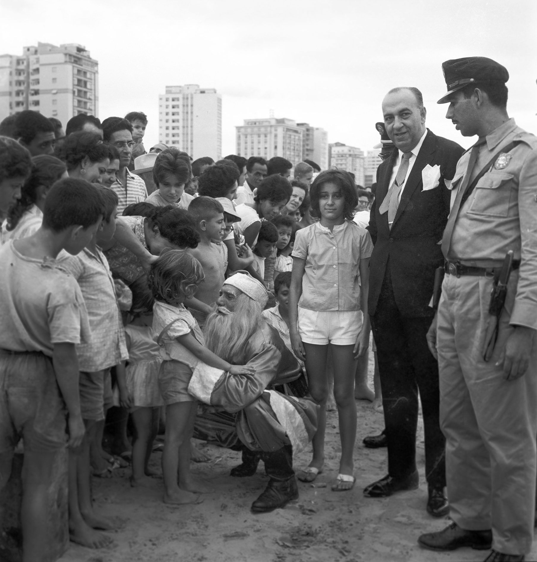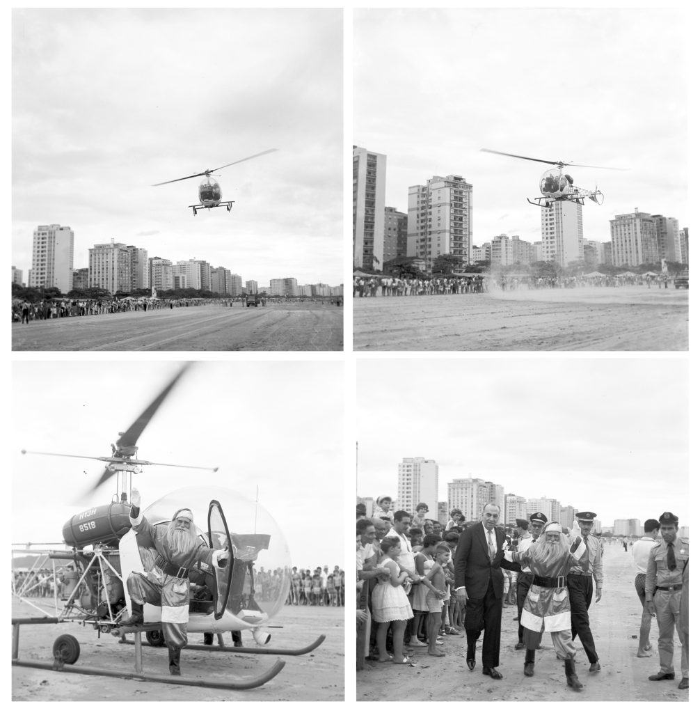 Santos, 17 de dezembro de 1961. Aquele domingo amanheceu diferente, com a cidade inteira tomada por uma expectativa alegre que se espalhava desde cedo pelo Gonzaga. Era o dia em que Papai Noel, em versão moderníssima para os padrões da época, desembarcaria não de trenó, mas de helicóptero da Força Aérea Brasileira, tomando de surpresa até os adultos mais céticos. Quando o ronco das hélices surgiu ao longe, a criançada correu para a beira da areia, olhos espichados para o céu, enquanto a multidão crescia a cada minuto. Bastou o aparelho baixar na praia para que o Gonzaga se transformasse num palco de festa, numa recepção apoteótica que marcou o imaginário santista. Como promoção do Conselho Municipal de Turismo, aquele domingo ganhou ares de espetáculo, inteiramente dedicado aos pequenos da cidade.