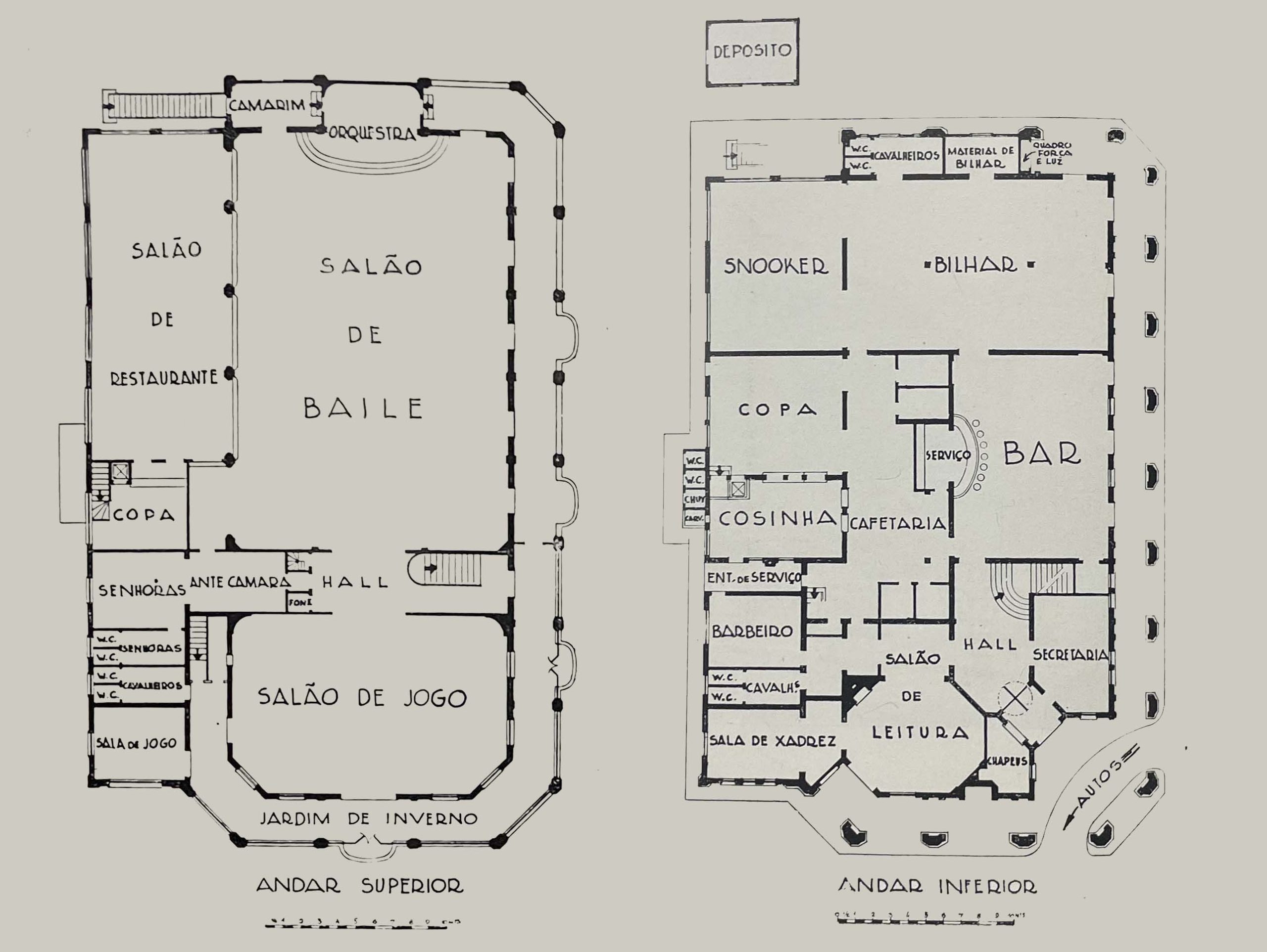 O tradicional salão de baile manteve suas dimensões originais, mas recebeu piso de parquet de embuia, colunas estilizadas com capitéis bronzeados e nova pintura em tons de verde-pálido e ouro-velho. Foi também criado um palco luminoso para orquestra, com camarim e entrada independente. O salão de jogos passou a contar com ventilação forçada e iluminação fluorescente, considerada uma novidade para a época.