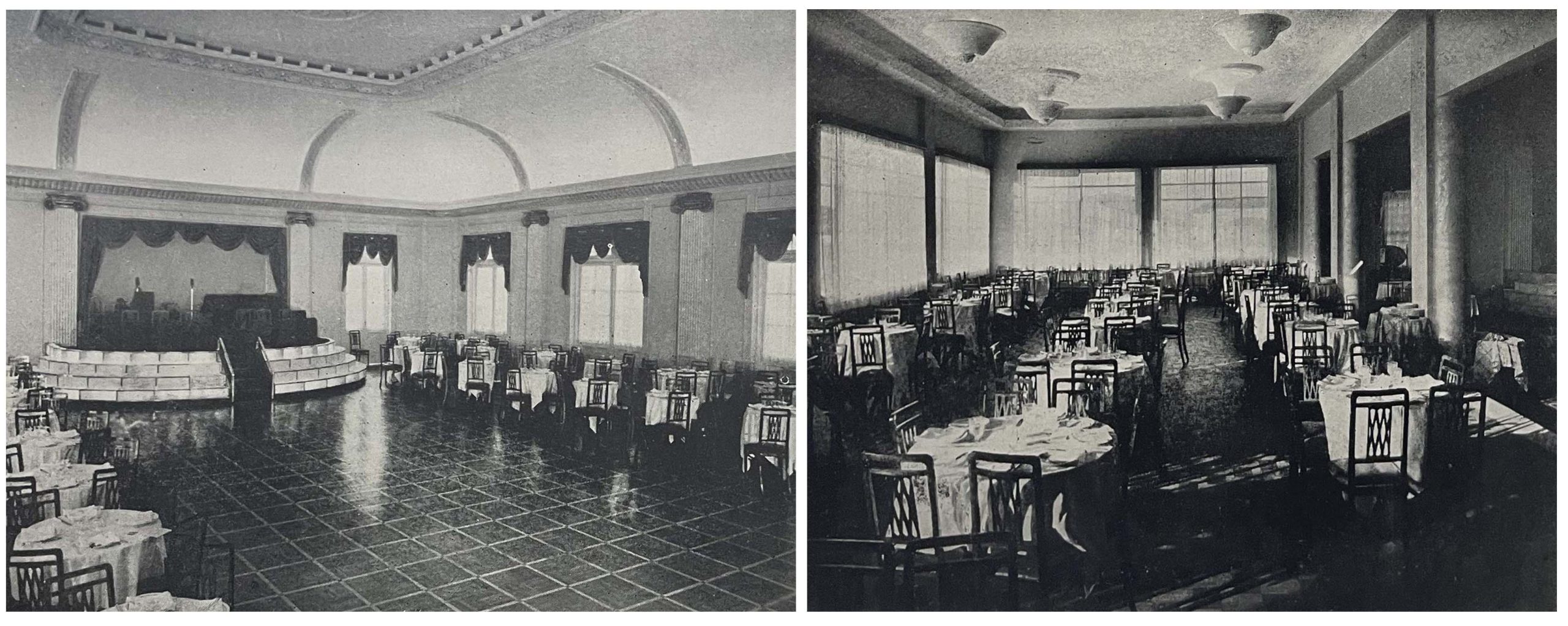 O terreno lateral foi aproveitado para ampliar o edifício, permitindo a criação de novas dependências. No pavimento inferior, foram construídas instalações de cozinha e copa, salão de sinuca, salão de barbeiro e sala para jogos de xadrez. No andar superior, surgiram uma nova sala para a diretoria, dependências destinadas às senhoras e um salão de restaurante com anexos. A decoração interna foi completamente renovada, com pisos, iluminação e mobiliário modernos, além da instalação de um sistema interno de telefonia, campainhas, som ambiente e monta-pratos elétrico.