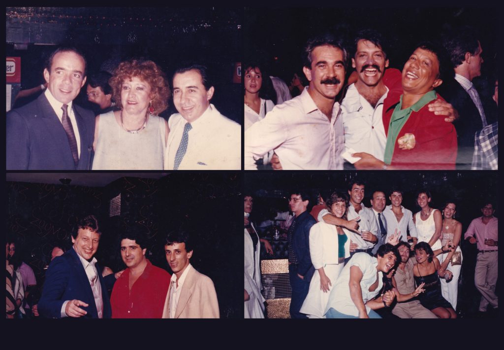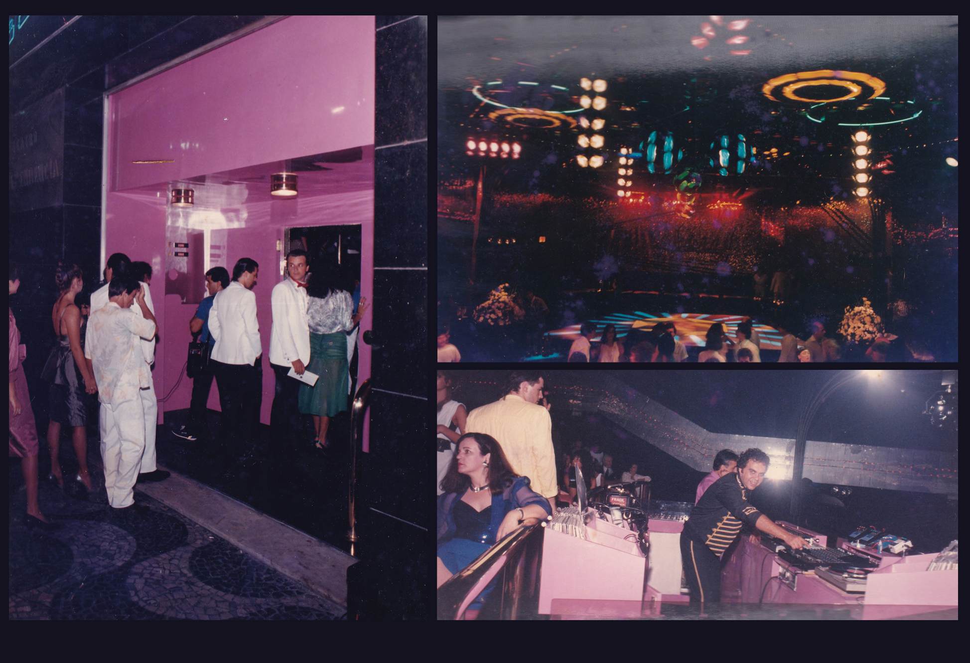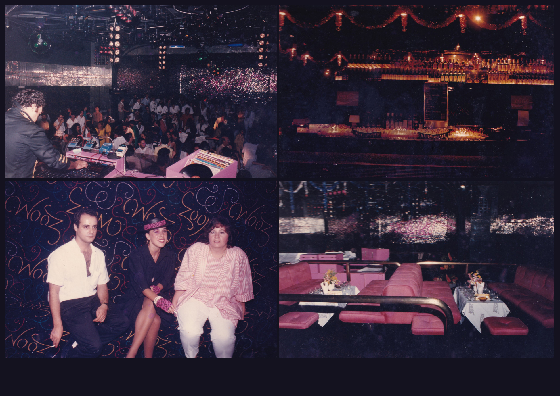 Os ambientes da Zoom, em toda a sua atmosfera oitentista: a cabine do DJ com vista para a pista lotada; o bar iluminado; os assentos laterais com paredes revestidas de carpete estampado com serpentinas que desenhavam a palavra “Zoom”; e os disputados camarotes, todos forrados em rosa.